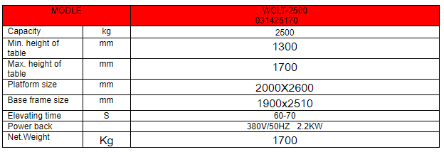 WCLT-2500 Loading Table