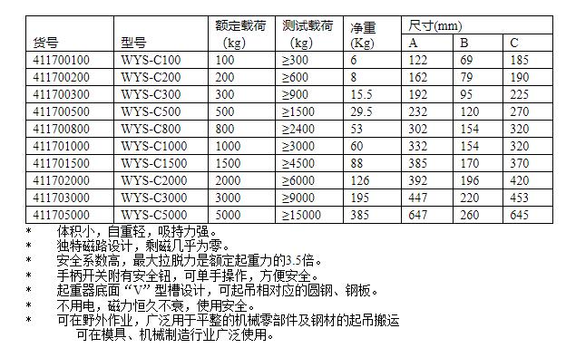 WYS-C系列强力永磁起重器