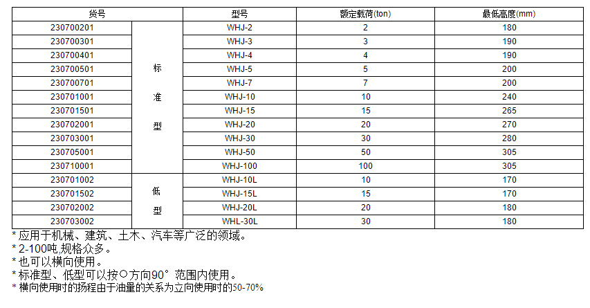 标准型﹠底型油压千斤顶WHJ系